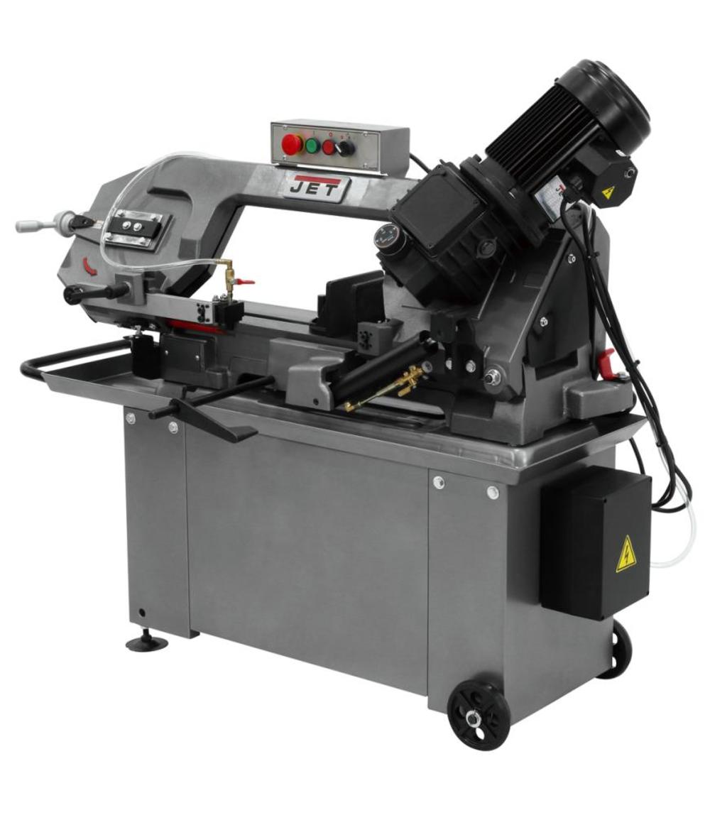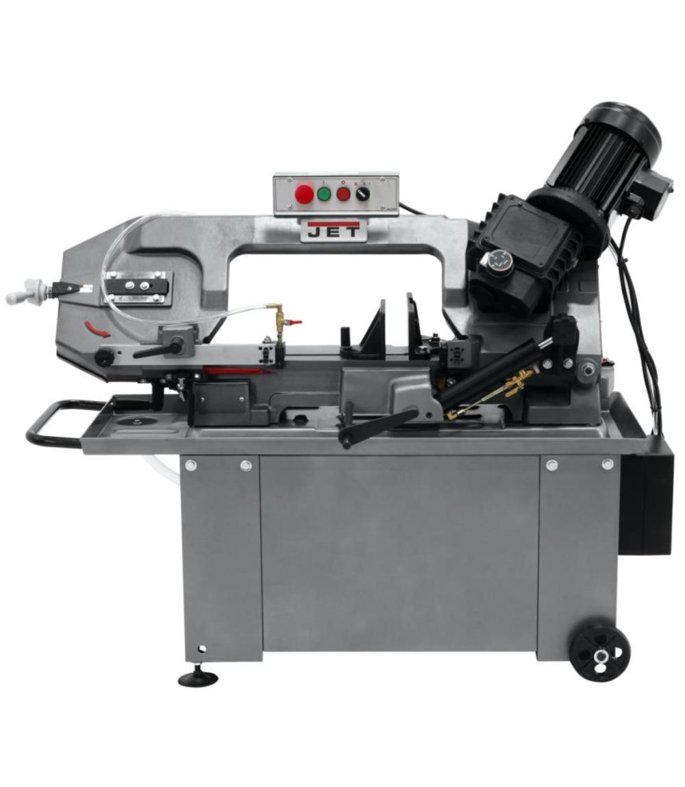 The HBS-814GH 8 In. x 14 In. Geared head horizontal band saw boasts a 1 HP motor, hydraulic feed, and hardened and ground worm gears. Each handsaw comes standard with a hydraulic feed, coolant system, 3/4 In. carbon steel blade, and quick action vise.