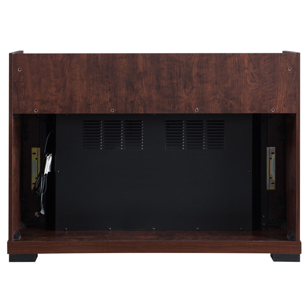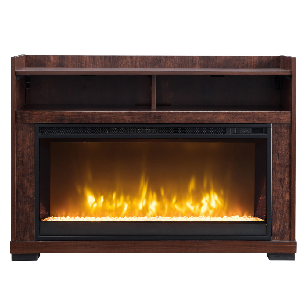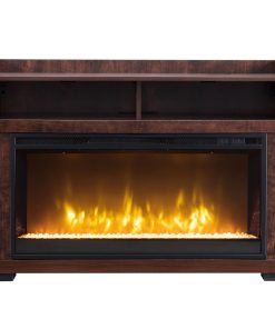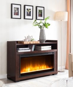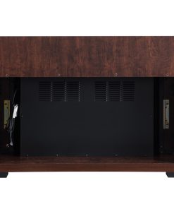 Contemporary style abounds in this Media Electric Fireplace, with a wide view linear insert. Distinctive smooth Cherry finish, generous open storage, a three side top for safe display for flat panel TVs. This Media Fireplace works with clean line d??cor & modern or contemporary design, often hard to find in a electric media fireplace.