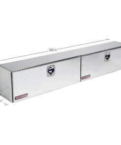 Hi-side boxes deliver greater protection from the elements and vandalism. The drill resistant core protects against break-ins and the gutter design channels rain and snow off of the box to keep contents dry. The model 396-0-02 aluminum hi-side box features a diamond plate pattern with Armor-tuf? clear coat finish that ensures years of dependability and has a storage capacity of 11.8 Cu. Ft.