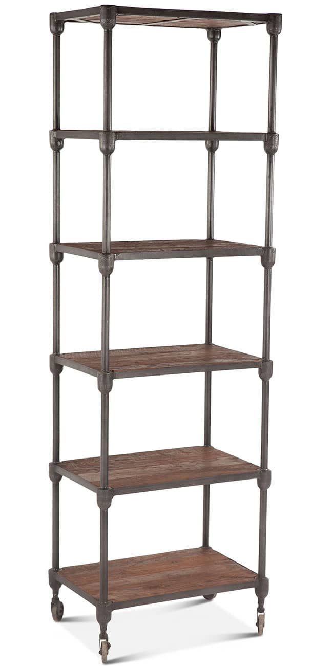 Home Trends & Design Industrial Teak 80″ Wheeled Bookshelf