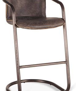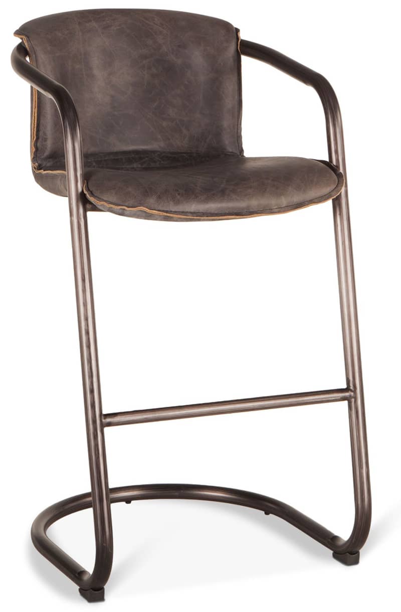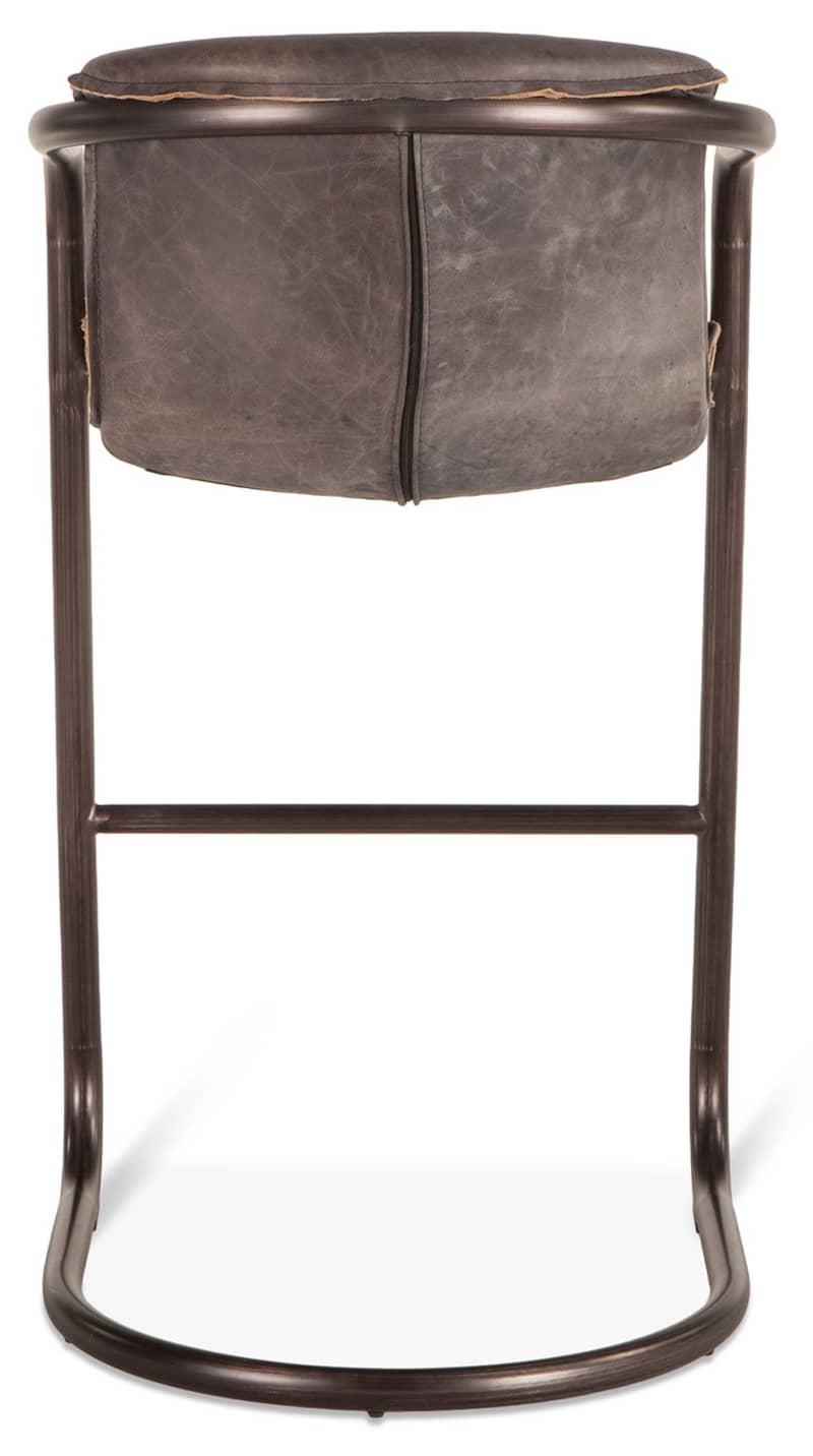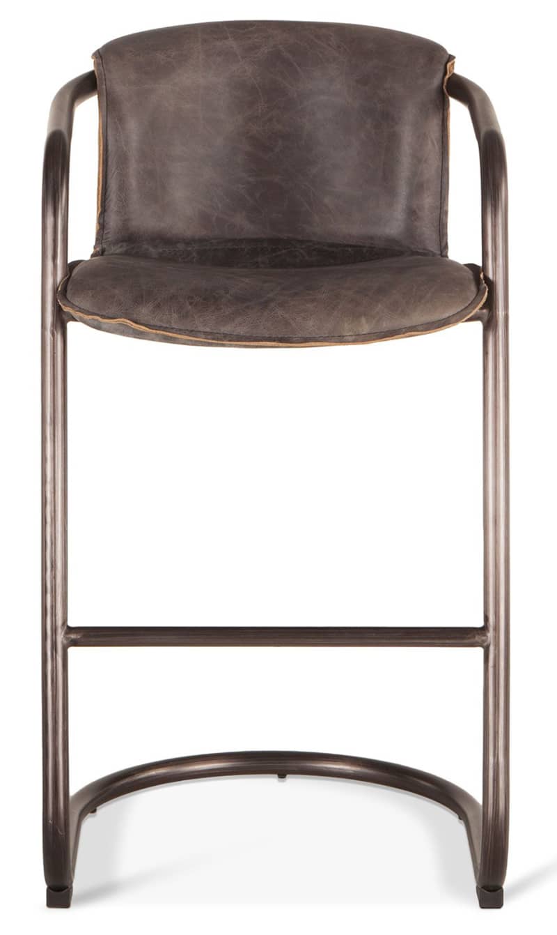 Home Trends & Design GPF-BC22AE Portofino Leather Bar Chair In Antique Ebony And Brushed GunmetalOur Portofino collection of retro-inspired chairs and sofas will add vintage charm to your dining room, kitchen, or living room. The distressed antique ebony leather seat has a soft feel for ultimate comfort, while the exposed trim provides vintage flair. The U-shaped steel frame and legs in rustic, brushed gunmetal finish includes levelers with caps to protect all types of flooring. Combine with your favorite bar-height gathering table for a casual dining space or add a few to your eat-in bar for the perfect work space. This pre-assembled bar chair is ready-to-use and of the finest quality, and with its classic design and elegance, it will make an effortless addition to any home. Features