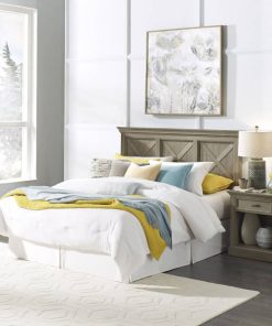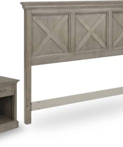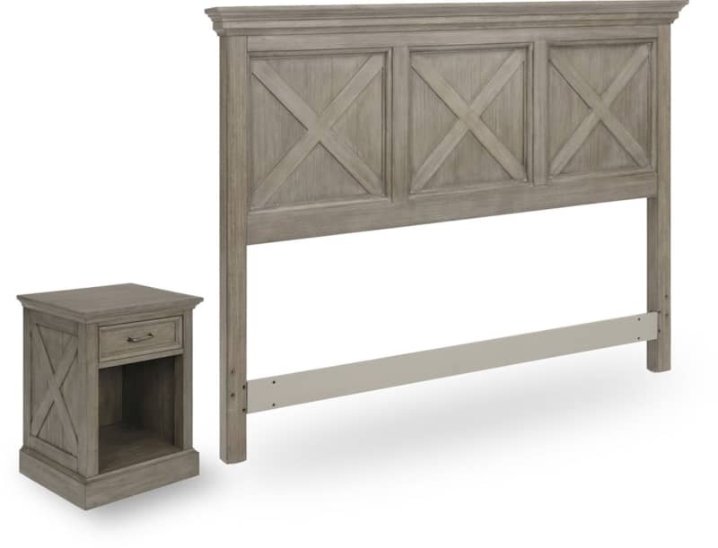 Homestyles 5525-5015 Mountain Lodge Queen Headboard & Nightstand In GrayRustic casual design that is at home in a mountain lodge, as it is in a mid-town loft. Crafted of mahogany solids and veneers with engineered woods, that features solid wood ??X?? frame design, with inset wainscot panels, with all surfaces wired brushed to provide a rough-hewn look. Finished in a multi-colored gray that provides unique high lighting to the design. Headboard features large shaped solid wood molded top. Can be attached to either a Queen or Full-size bed frame. Hardware not including for attaching to bed frame. Nightstand features a single framed drawer and antiqued nickel finished drawer pull, with a large open storage area below. Note finish and measurements may vary, assembly required. Features