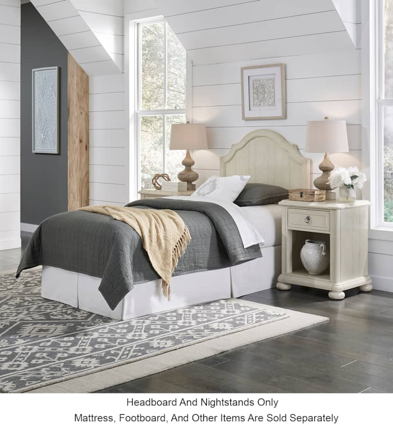Homestyles Provence Antiqued White Twin Headboard And Two Nightstands