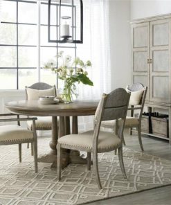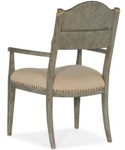 Hooker Furniture 6025-75301-90 Dining Room Alfresco Aperto Rush Arm Chair In OysterEvoke a welcoming European farmhouse with the charming and distinct Aperto Rush Arm chair. The comfortable upholstered seat covered in the ecru-colored Chimay Linen performance fabric is trimmed in light bronze nailheads, and a removeable back cushion offers neck and head support. The light gray finish has a distressed antiqued appearance, and the woven corn leaf back gives tactile appeal. Delivering the casual look and feel of ageless pieces acquired during travels in the Old World, Hooker Furniture is featuring Alfresco, a whole-home collection with relaxed European provincial styling. The Alfresco collection has a well-traveled aesthetic that is inspired by heirloom pieces found in homes perched on cliffs along the Italian coastline of the Adriatic Sea. The collection of bedroom, dining room, occasional and accent furniture features moderately distressed designs that are enhanced by accent paint finishes that create an eclectic feel. Alfresco is constructed of oak, maple and hickory veneers and poplar solids, and includes several pieces with stone and metal accents. Features