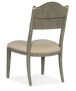 Hooker Furniture 6025-75311-90 Dining Room Alfresco Aperto Rush Side Chair In OysterEvoke a welcoming European farmhouse with the charming and distinct Aperto Rush Side Chair. The comfortable upholstered seat covered in the ecru-colored Chimay Linen performance fabric is trimmed in light bronze nailheads, and a removeable back cushion offers neck and head support. The light gray finish has a distressed antiqued appearance, and the woven corn leaf back gives tactile appeal. Delivering the casual look and feel of ageless pieces acquired during travels in the Old World, Hooker Furniture is featuring Alfresco, a whole-home collection with relaxed European provincial styling. The Alfresco collection has a well-traveled aesthetic that is inspired by heirloom pieces found in homes perched on cliffs along the Italian coastline of the Adriatic Sea. The collection of bedroom, dining room, occasional and accent furniture features moderately distressed designs that are enhanced by accent paint finishes that create an eclectic feel. Alfresco is constructed of oak, maple and hickory veneers and poplar solids, and includes several pieces with stone and metal accents. Features