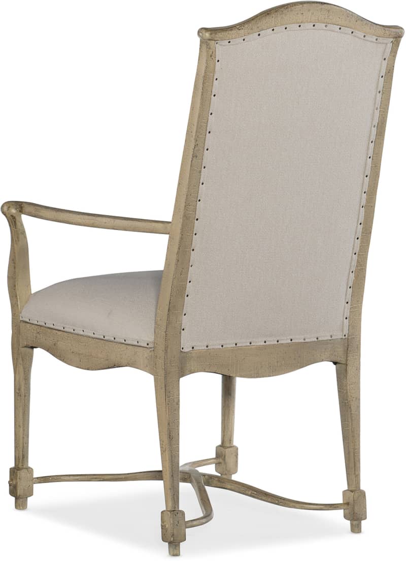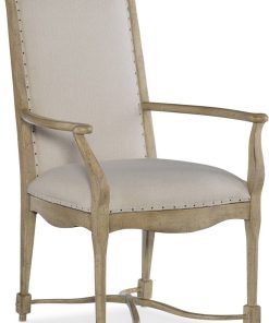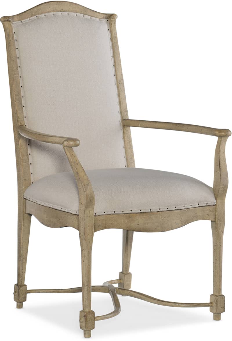 Hooker Furniture 5805-75300-85 Dining Room Ciao Bella Upholstered Back Arm Chair In Natural And Tuscan WhiteThe delight is in the details of the Belgian-inspired Ciao Bella Upholstered Arm Chair. From the delicate, curved, intersecting stretcher base to the intricate tack-nail trim outlining the soft gray-white seat and back to the scalloped seat base, this versatile chair is timeless and inviting. The natural-colored finish is soft and aged and complements the Tuscan gray-white fabric perfectly. Inspired by the small farmhouses that dot the French and Italian countryside and have been in the hands of the same family for generations, Hooker Furniture introduces the rustic Ciao Bella Collection. The whole home collection is an eclectic mix of European farmhouse pieces that have the appearance of furniture that has been refinished multiple times as it has passed through the generations. Ciao Bella includes bedroom, dining room, occasional, home office and accent furniture, and features a finish called Timeworn Gray that accentuates the historical nature of European farmhouses ?C many of which include a variety of furniture styles that have been added by each generation of owners. Features