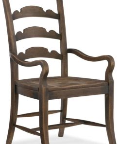 Hooker Furniture 5960-75300-BRN Dining Room Hill Country Twin Sisters Ladderback Arm Chair In Saddle BrownPull up this chair and listen to stories of the Old West, while you break bread with family and friends. This character-filled ladderback design is in a timeworn saddle brown finish. Wood seat. Inspired by the most beautiful examples of American countryside, Hooker Furniture’s Hill Country Collection imparts an authentic American character. Hill Country is a collection of bedroom, dining, home office and accent furniture crafted of flat-cut rustic white oak veneer that is cracked before the finish is applied to appear seasoned over time. Features