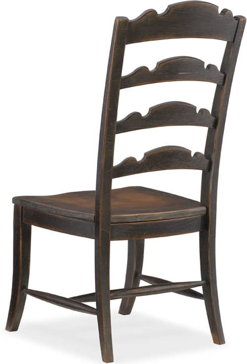 Hooker Furniture 5960-75310-BLK Dining Room Hill Country Twin Sisters Ladderback Side Chair In Anthracite BlackInspired by the rich heritage of the American countryside, this classic ladderback side chair is perfect for breaking bread with family and friends. The character-filled finish is an aged black with light dusty-wax hang up. Wood seat. Inspired by the most beautiful examples of American countryside, Hooker Furniture’s Hill Country Collection imparts an authentic American character. Hill Country is a collection of bedroom, dining, home office and accent furniture crafted of flat-cut rustic white oak veneer that is cracked before the finish is applied to appear seasoned over time. Features