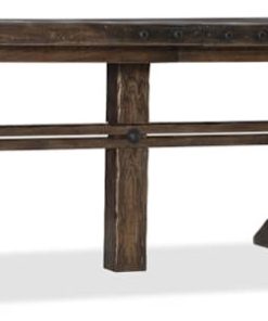 Hooker Furniture 1618-75207-DKW American Life Roslyn County Trestle Dining Table In Dark WalnutIn classic farm-to-decor style, the inviting Roslyn County Trestle Dining Table evokes authenticity with its plank-and-metal-sheeting base reminiscent of trusses in reclaimed barns. The Dark Walnut finish is waxed and luxurious to the touch. Without leaves, the table accommodates 6 guests, and accommodates up to 10 guests with two 21-inch leaves. The server tray is included and can be used with the 1618-75900-DKW buffet. From farm-to-d??cor looks to rustic luxe, AMERICAN LIFE evokes a sense of community, easy living and authentic craftsmanship. The classic farm-to-d??cor collection, Roslyn County, offers heirloom quality and hand-crafted appeal with a simple style that demonstrates how Americans are living. Roslyn County is crafted in Walnut and Hickory, waxed and luxurious to the hand. Roslyn County??s big-scale pieces will be at home all across America. Trestle bases, planking, rake-back spindles and marquetry add interest to the simple lines of Roslyn County. Metal-bar hardware in an oil-rubbed bronze finish with bolts on the ends complete the look. Features