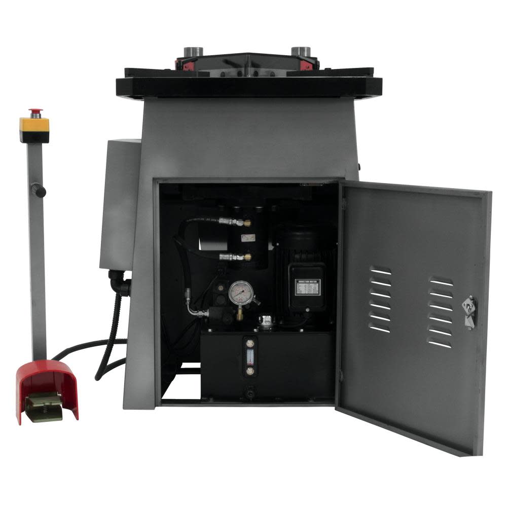 With a fixed 90?? cutting angle, the Jet hydraulic notcher delivers corner cuts like no hand tools can. Users may notch up to 9-gauge sheet metal up to 50 strokes per minute. The 7 3/4 In. blades can be re-sharpened repeatedly to improve lifespan and save costs.