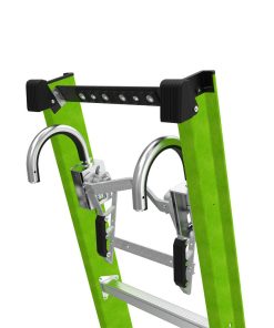 Patent-pending Hi-Viz green rail prevents catastrophic accidents caused by people who walk or drive into an extension ladder while in use