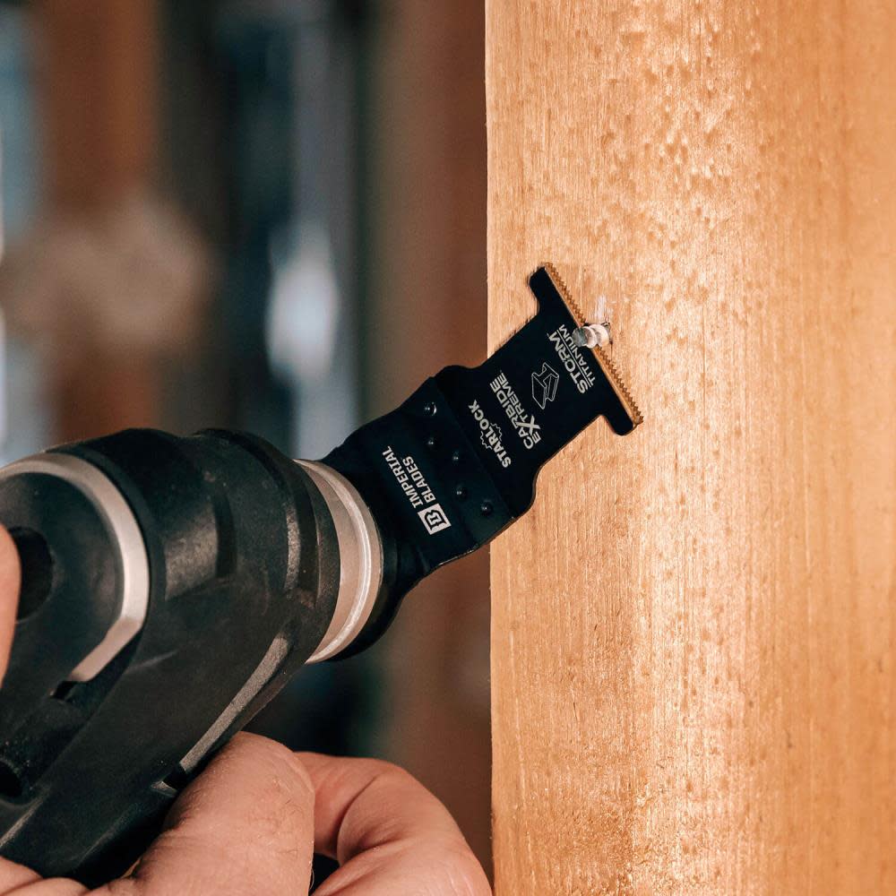 Imperial Blades’ Starlock? 1-3/8″ Carbide Extreme Storm Titanium Metal Blade, is an extreme metal-cutting oscillating blade composed of heavy-duty bi-metal (BiM) combined with Storm Titanium coating for the longest life and best performance. The Carbide Extreme blade utilizes the carbide embedded teeth to tackle the toughest applications and last up to 30X more cuts than standard Imperial bi-metal blades. Recommended applications are: Thick Metal, Bolts, Screws, Copper Pipe, Wood & Nails and more. Popular projects include deck maintenance, framing, hard material flooring, automotive or plumbing applications and porous stonework. Compatible with Starlock? multi-tools: Bosch and Fein. Also fits non-Starlock multi-tools: Milwaukee, Ridgid, Makita, Rockwell and more!
