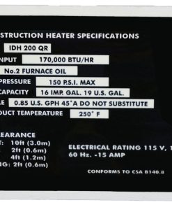 Compact, lightweight and extremely powerful, the IDH200QR-OIL is equipped with standard recirculation, high static pressure, low dB noise level and is capable of up to 100 ft of total duct length. A cool to the touch jacket, stainless steel multi-pass heat exchanger, 3-trials for ignition and ez ball valve switchover features make this system ideal for applications where portability, durability and reliable operation are necessary. Heaters require special outfitting to work properly at elevations greater than 2,000 ft. Please contact our sales team for assistance.