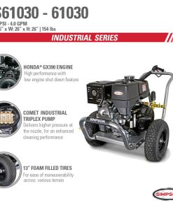 The Industrial Series pressure washers are an excellent addition to the portfolio of pressure washer cleaning products that SIMPSON is known for in the industry. Perfect for construction sites, rental yards, oil fields, heavy-duty paint prep and any other big jobs, the SIMPSON Industrial Series guarantees a professional cleaning experience at the best price to value in the market.