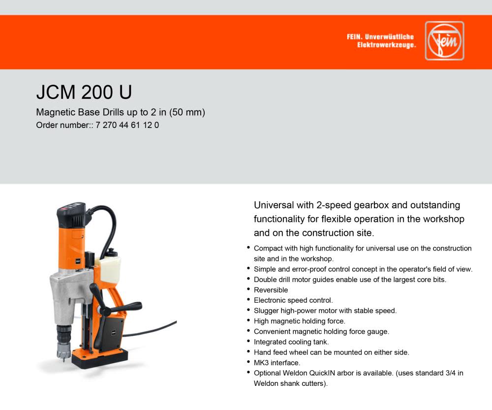 JCM 200AUTO SLUGGER Magnetic Drill 2 In. Capacity
