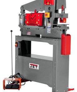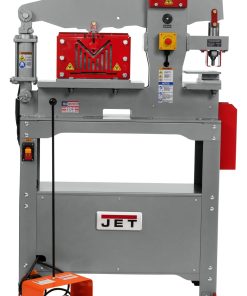 The JET 45 Ton Ironworker delivers 4 workstations to provide solutions to users needs, with a Punch workstation, a combination Flat Bar Shear and Angle Shear, and an integrated 7-size Rod Shear. Small and with a compact footprint, this Ironworker also includes a Punch & Die Holder and Slug Receptacle to keep the users work area clean and organized. This sturdy and tough Ironworker is Made in the USA and back by the JET RED Assurance 2-Year warranty.