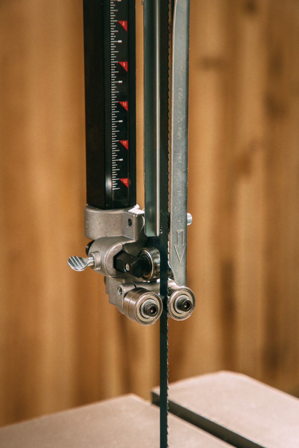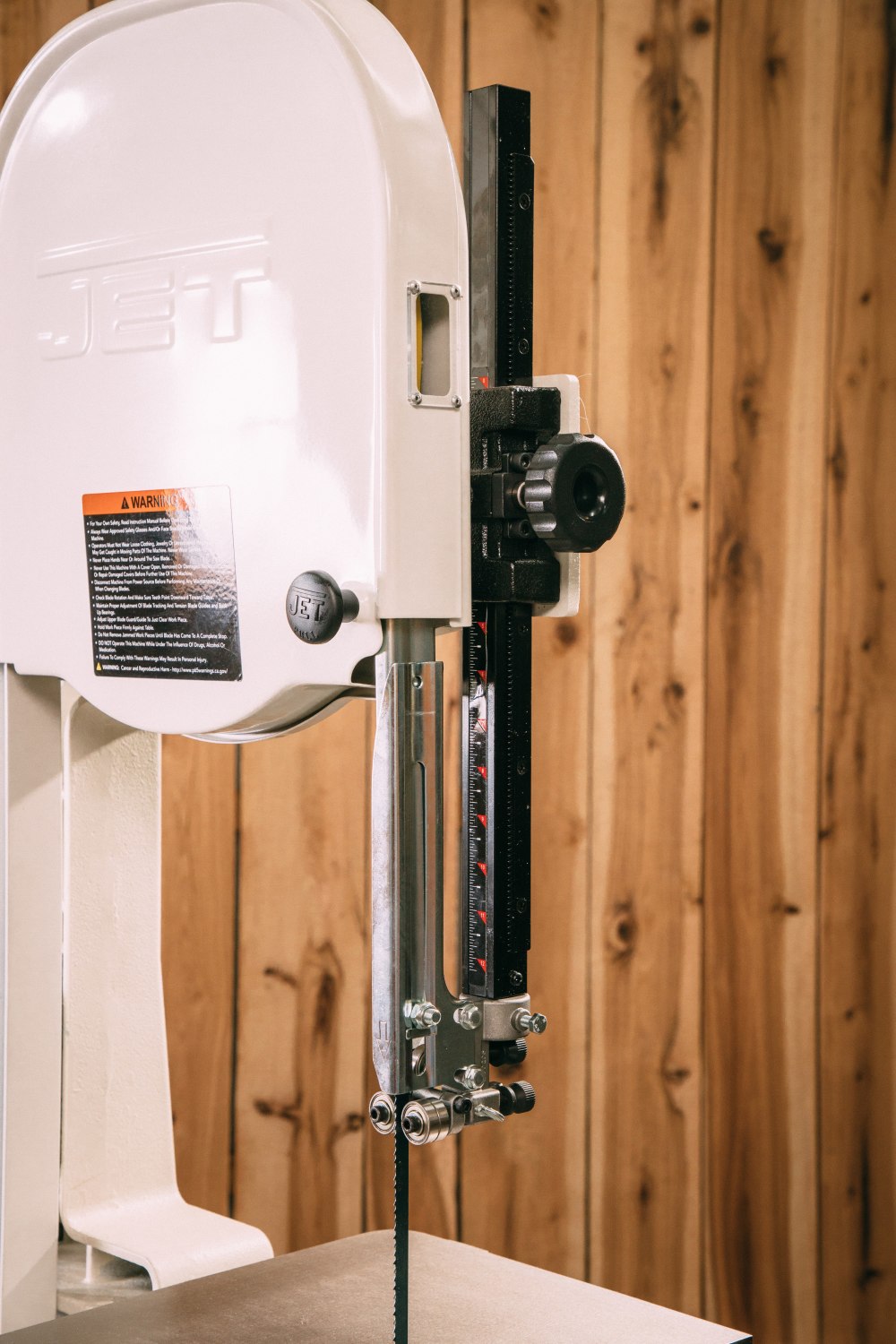 Ball-bearing guides keep Jet deluxe bandsaw blade on track