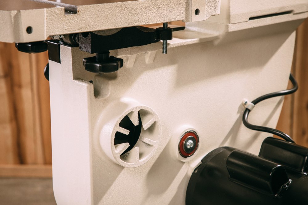 All cast-iron housing provides a stable, safe cutting base