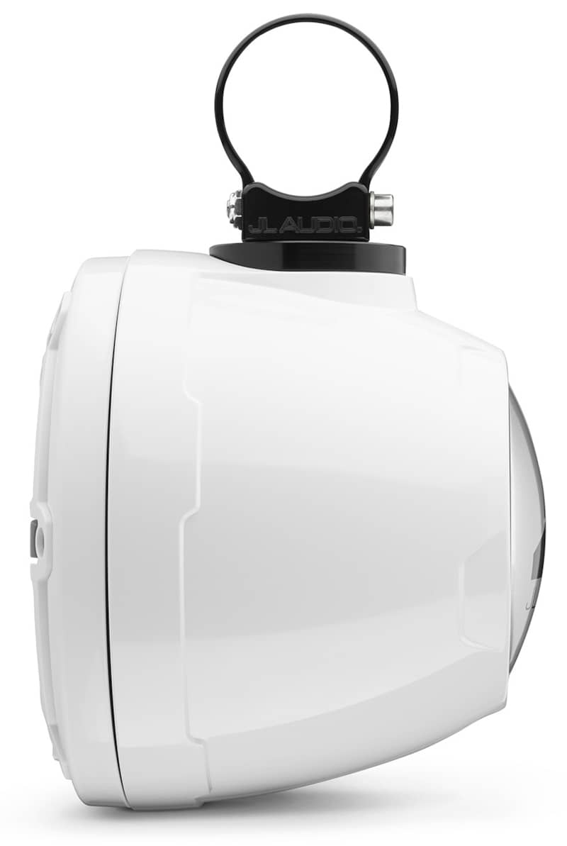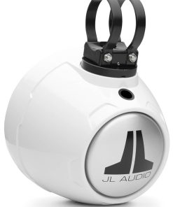 JL Audio 93412 M6 Series 6.5″ Marine Enclosed Coaxial Speaker System With Transflective LED Lighting (Pair)M6 6.5-inch Marine Enclosed Coaxial Speaker System with Transflective? LED Lighting (75 W, 4 ??) – Gloss White Enclosure, Gloss White Trim Ring, Gloss White Sport Grille Ideal for powersports, marine and off-road vehicle applications, these enclosed speaker systems include our maximum-performance, M6 6.5-inch marine coaxial speakers with silk dome tweeters housed in rugged, injection-molded enclosures to deliver clean, loud audio. A rotating clamp receiver is included with each VEX? pod to mate with an appropriate fixture (sold separately) for mounting to a flat surface, roll-cage or tower structure, allowing precise aiming for optimum sound. Pipe mounting fixtures (sold separately) are available in a variety of sizes to fit a wide range of tube diameters. The patent-pending Transflective? RGB LED technology emits a smooth lighting effect through the woofer cone, with a choice of several lighting colors. Add an optional RGB controller to create thousands of color variations. Professional installation is strongly recommended. The enclosures feature a decorative, aluminum logo cap on the end opposite the speaker, which can be oriented to match any custom mounting application. For convenience, ten feet of our 6-conductor, multifunction cable is included with each VEX? pod for making speaker and illumination connections. Although VEX? pods can be used with as little as 25 W per channel, we recommend powering these systems with an amplifier capable of 75-150 W of continuous power per channel. For best results, use with a subwoofer. Like all JL Audio marine speakers, this system is weatherproof and built to deliver years of listening enjoyment. Sold as a pair. Specifications