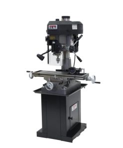 The JMD-18 Mill/Drill with R-8 taper by JET? offers a lightweight choice to traditional milling machines. These devices feature a belt-driven drill press and are equipped with dual-coordinate functions typical of milling machines, achieving efficient, flexible operation. The Jet JMD-18 Mill/Drill with R-8 taper is constructed with a cast-iron column made from a single piece for additional stability and support. A belt cover combined with a slide latch allows for fast belt adjustments when changing spindle speeds. The drill press angle vise holds securely, and the 360-degree swivel with added lamp make safe operation easy and well-lit. The unit has a heavy-duty powered downfeed and a manual fine feed system. A draw bar is also featured, as well as a guard for the drill chuck, for additional safety. The Jet milling machine features a carbide facemill that’s adjustable, has an extra-large worktable, comes with a UL-listed motor and meets strict guidelines and requirements of the CSA group.