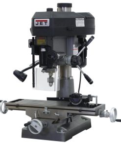 The JMD-18 Mill/Drill with R-8 taper by JET? offers a lightweight choice to traditional milling machines. These devices feature a belt-driven drill press and are equipped with dual-coordinate functions typical of milling machines, achieving efficient, flexible operation. The Jet JMD-18 Mill/Drill with R-8 taper is constructed with a cast-iron column made from a single piece for additional stability and support. A belt cover combined with a slide latch allows for fast belt adjustments when changing spindle speeds. The drill press angle vise holds securely, and the 360-degree swivel with added lamp make safe operation easy and well-lit. The unit has a heavy-duty powered downfeed and a manual fine feed system. A draw bar is also featured, as well as a guard for the drill chuck, for additional safety. The Jet milling machine features a carbide facemill that’s adjustable, has an extra-large worktable, comes with a UL-listed motor and meets strict guidelines and requirements of the CSA group.