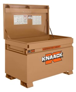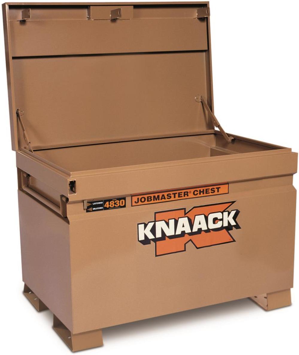 The KNAACK? JOBMASTER? Chest 25.25 cubic feet is an excellent choice for professionals and amateurs who want to quickly transport their items from location to location and keep them safe. Its WATCHMAN? IV Lock System along with the three-point latch and the full-length welded piano hinge helps to prevent theft. Measuring 30 inches wide, 48 inches long and 34 1/4 inches tall (61 1/4 inches tall when open), this portable storage chest has a 25.25 cubic foot capacity, providing plenty of space. The four-way skids make transporting the chest easy and convenient, and it uses the model 21 accessory tray. Access to power cords is made easier thanks to the weatherproof Power Pass? Electrical Pass-Thru grommet. The baked powder-coat finish prevents the Knaack storage chest from accumulating wear and tear.