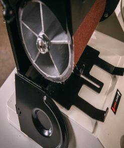 Jet belt and disc sander includes machine, sanding belt, and sanding disc