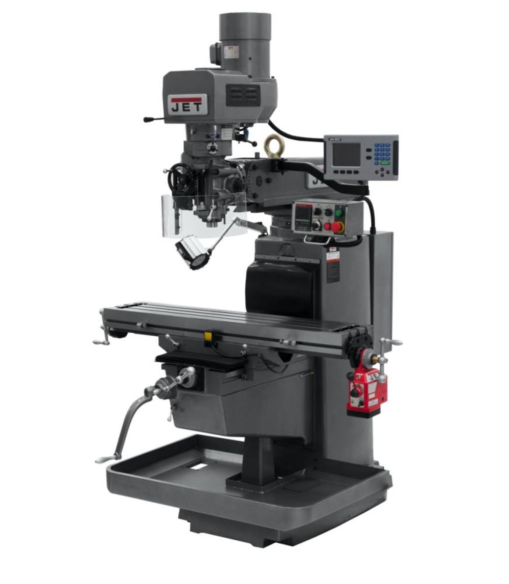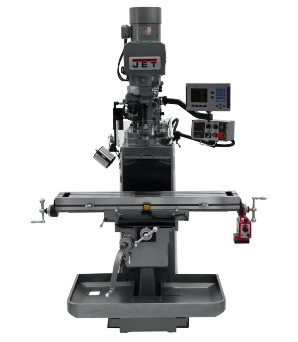 Constructed using the Meehanite? casting process, the JTM-1050EVS2/230, 10″ x 50″ Electronic Variable Speed Milling Machine provides consistent and reliable operation. The newly designed column and base incorporates a rigid, robust design that is easily leveled without lifting the machine. JET Mills have features you’ve come to expect and are backed by the industry-leading JET Two Year Warranty