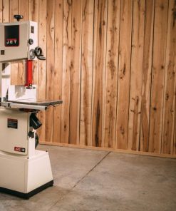 The newest addition to the Jet Bandsaw lineup, the Jet 14 In. SFX steel frame Bandsaw redefines the line between functionality and afford ability. The large, cast iron table features 360 Sq. In. of work surface for greater work piece support when making deep cuts. The machined aluminum fence system features easily visible measurements for the most accurate cutting. This saw is equipped with jet??s easily adjustable blade guide system, makes adjustments quick and simple. The Jet 14 In. Bandsaw also features over 13 In. of re-saw capacity, and dual 4 In. dust ports for maximum dust collection efficiency. Heavy duty tubular steel welded construction, robust stamped steel doors with welded steel pin hinges, and heavy duty base, allows for stability and durability when sawing large work pieces. The Jet 14 In. SFX Bandsaw provides the woodworker all the premium features of a higher end saw with superior performance to complete any project.