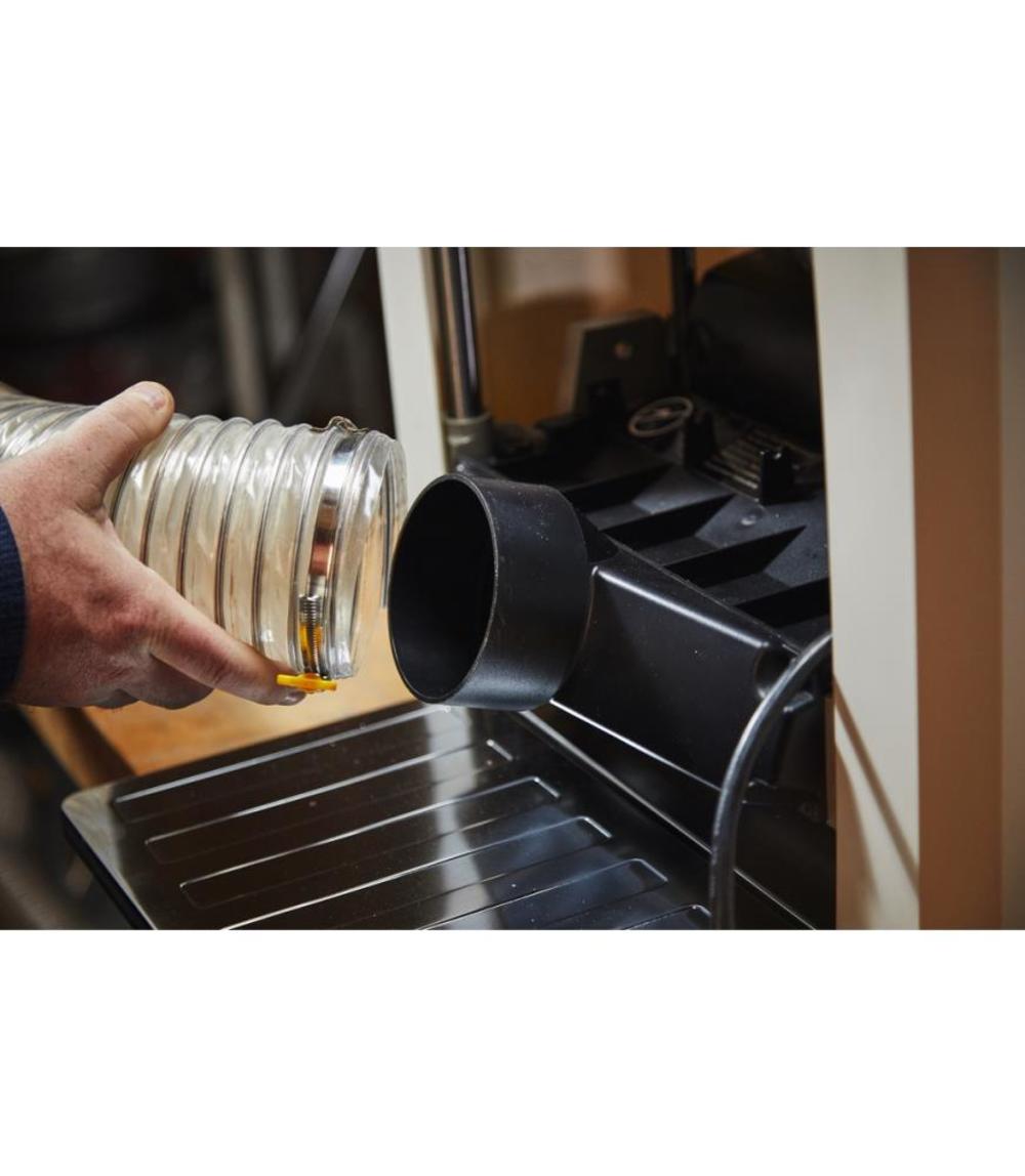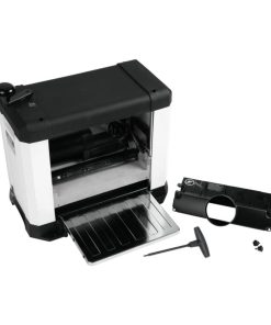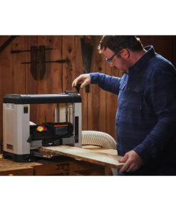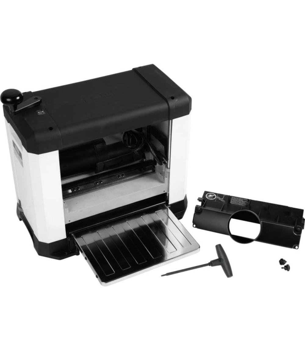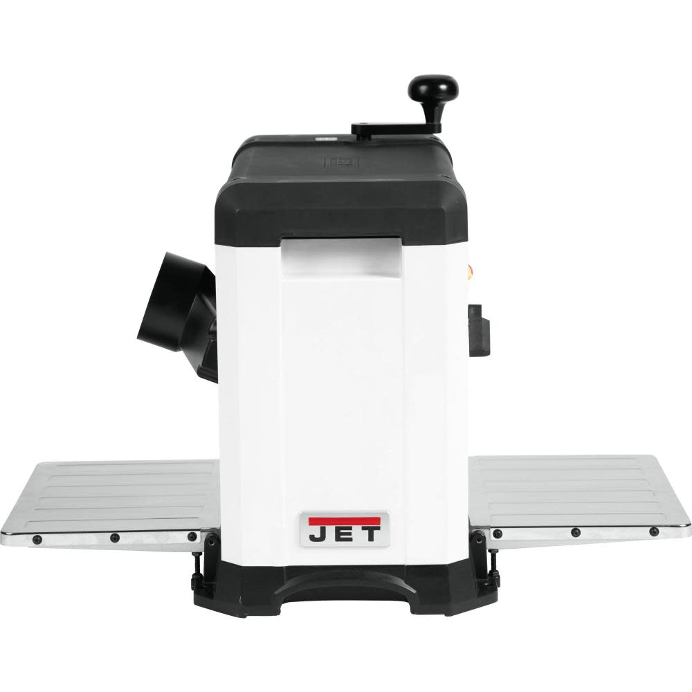 The Jet 13 In. bench top planer delivers the power and efficiency that woodworkers demand in the shop. The Jet 13 In. Planer produces a smooth and consistent cut surface thanks to its helical style cutter head with 6 rows of 24 individual quick change inserts which can be easily rotated or replaced if damaged or worn. This segmented cutter head design helps reduce noise as its 2 HP motor is turning at an impressive 10,000 RPM. Features include a rugged 4 post design, adjustable folding tables, 2 Infeed speeds and a sturdy cast iron base which helps reduce snipe.