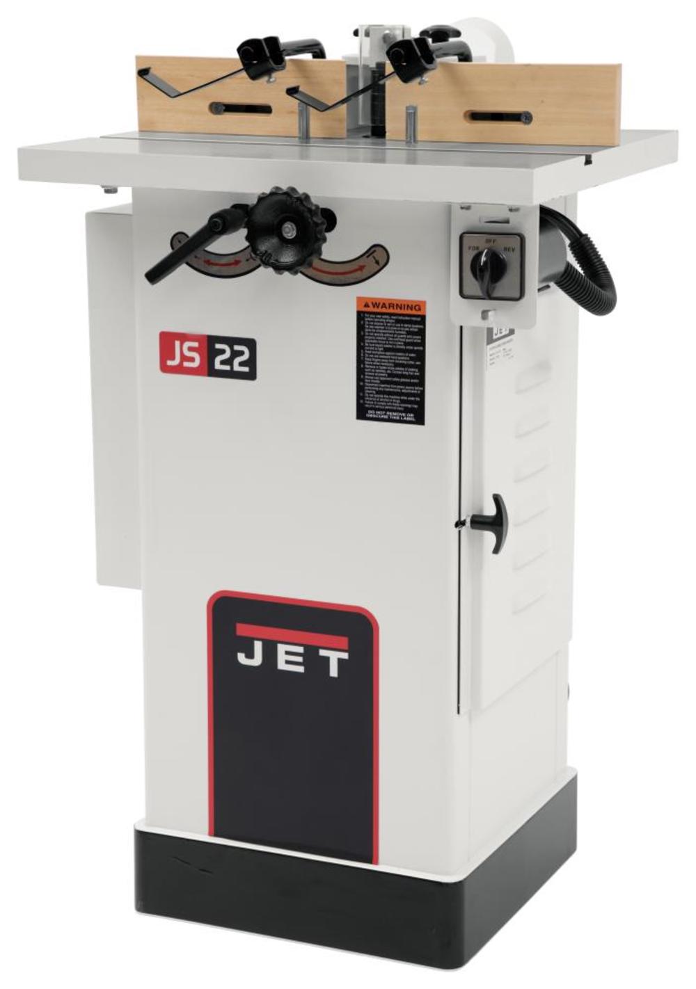 If you’re looking for a space-saving shaper for your shop, the new JET? JWS-22CS shaper is what you need. This compact powerhouse features a 7000 and 9000 RPM reversing 1-1/2 HP motor. The large 22-3/8 In. x 18-1/8 In. precision ground cast iron table provides a large, durable, work area. Safe, easy cutter set up is assisted by a positive center set spindle lock. The independent left and right fences feature micro-adjustment, and a built in 4 In. dust port. If you feel you just don??t have the space, the nominal 23 In. x 25 In. footprint of this workhorse is sure to change your mind. Put the new Jet JWS-22CS shaper in your shop today.
