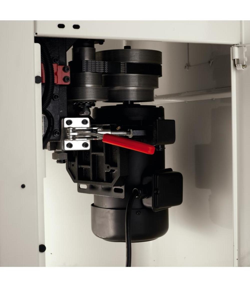 This heavy-duty JET? shaper is available with a powerful 5 HP, 1Ph motor with magnetic controls. The four-speed (4000, 6000, 8000, 10000 RPM) step pulley drive with quick release lever allows you to select the best speed and torque for different cutter diameters. The spindle is reversible, and receives maximum power transfer from the v-belt. The independently adjustable fences have micro adjust controls for precise positioning.