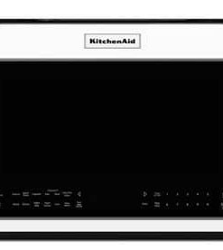 KitchenAid KMHC319EWH 30″ White Over-The-Range Microwave OvenThis high power, 1000-watt convection over-the-range microwave lets you use it to steam and simmer thanks to a sensor-monitored cooking cycle and an innovative container. A 400 CFM Motor Class ventilation fan helps capture smoke, grease and odors from the cooking surface below, empowering cooks to create with confidence. The beauty of the stainless steel finish even extends to the interior. Features