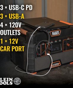 Klein Tools’ Portable Power Station has been designed with the job site in mind. The 983Wh lithium-ion battery provides power to corded tools and electronics to keep the job running. Its environmentally friendly, Pure Sine-Wave power is a better alternative to loud, exhaust-emitting gas generators. Portable Power Station powers electrical tools and devices. 4 120V outlets and 6 USBs, plus 12V car port for max usability. Jobsite Ready: Power to run hammer drills, miter saws and more. Solar compatible with efficient MPPT; extend runtime by pairing with one or two Klein Tools’ Solar Panels (Cat. No. 29250). Pass through charging to simultaneously charge KTB1000 and power devices. Includes a reusable, washable filter to protect the power station from dust and dirt. Large 983Wh capacity to charge more power tool batteries, make more cuts and drill more holes. Top compartment stores power cords and keeps smaller items organized. For more than 160 years, Klein Tools has manufactured premium-quality, professional-grade hand tools that deliver the performance, durability and precision needed to get the job done right. Our family of engineers, workers and craftsman continue to put six generations of expertise into every tool we create by using only the highest quality materials, superior workmanship, and keeping manufacturing as close to home as we can. Klein isn’t just the name of our company, it’s also our family name. And since we’re an American company that’s family-owned and family-run, you know you can count on us to be here tomorrow. Klein Tools doesn’t just make great products, we make great products that stand up to the demands of the professionals who use them every day … Since 1857.