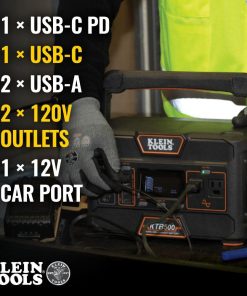 Klein Tools’ Portable Power Station has been designed with the job site in mind. The 505Wh lithium-ion battery provides power to devices and small rechargeable tools to keep the job running. Its environmentally friendly, Pure Sine-Wave power is a better alternative to loud, exhaust-emitting gas generators. Portable Power Station powers electrical tools and devices. 2 120V outlets and 4 USBs, plus 12V car port for max usability. Lightweight design and handle to easily carry to your job site. Harness the sun’s energy with Klein Tools’ Solar Panel (Cat. No. 29250) to charge the portable power station. Pass through charging to simultaneously charge KTB500 and power devices. 505Wh capacity can power a 50W, 5,000 lumen work light for a full 8 hour shift. Compact size for convenient storage in job box or vehicle to power devices anywhere. Internal cooling fan keeps the appropriate operating temperature range. For more than 160 years, Klein Tools has manufactured premium-quality, professional-grade hand tools that deliver the performance, durability and precision needed to get the job done right. Our family of engineers, workers and craftsman continue to put six generations of expertise into every tool we create by using only the highest quality materials, superior workmanship, and keeping manufacturing as close to home as we can. Klein isn’t just the name of our company, it’s also our family name. And since we’re an American company that’s family-owned and family-run, you know you can count on us to be here tomorrow. Klein Tools doesn’t just make great products, we make great products that stand up to the demands of the professionals who use them every day … Since 1857.