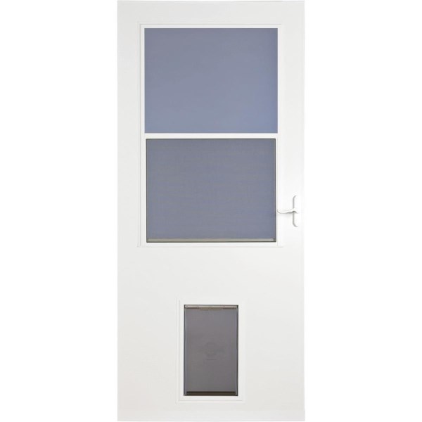 Larson Life-Core DuraTech 32 In. W x 81 In. H x 1 In. Thick White Self-Storing Storm Door With Pet Door