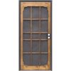 Heavy-duty storm door featuring self-storing half screen and built-in pet door. Constructed with DuraTech surface over 1-inch wood core for age and weather resistance. Window and screen systems provide ventilation control. Includes heavy-duty weatherstripping, adjustable speed closer in matching colors, and Reversa-Hinge for right or left mounts. Pet door measures 10-1/4 In. W. x 17-1/8 In. H. Fits pets up to 100 pounds. Standard door height 80 inches to 81 inches.