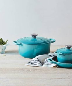 Le Creuset MS1605-17SS 5-Piece Caribbean Signature SetThe 5-piece Signature cookware set features our best selling enameled cast iron pots and pans, including our iconic Dutch oven and highly-rated signature skillet. Whether just starting to build your Le Creuset collection or adding to an existing collection, this set is the perfect place to start. It also makes an exceptional gift for weddings, showers, housewarming and for the person who loves to cook and entertain. Individually crafted by French artisans from the finest quality materials since 1925, Le Creuset enameled cast iron cookware is beloved for its perfected design and exceptional heat retention that produces superior results from stove to oven to table. Designed for generations of durability, the easy-to-clean porcelain enamel requires no seasoning, minimizes sticking and is dishwasher-safe. Set includes: 5 1/2 qt. round Dutch oven, 1 3/4 qt. signature saucepan and 9″ signature skillet. Features