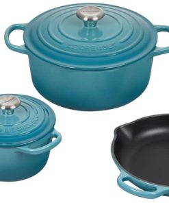 Le Creuset MS1605-17SS 5-Piece Caribbean Signature SetThe 5-piece Signature cookware set features our best selling enameled cast iron pots and pans, including our iconic Dutch oven and highly-rated signature skillet. Whether just starting to build your Le Creuset collection or adding to an existing collection, this set is the perfect place to start. It also makes an exceptional gift for weddings, showers, housewarming and for the person who loves to cook and entertain. Individually crafted by French artisans from the finest quality materials since 1925, Le Creuset enameled cast iron cookware is beloved for its perfected design and exceptional heat retention that produces superior results from stove to oven to table. Designed for generations of durability, the easy-to-clean porcelain enamel requires no seasoning, minimizes sticking and is dishwasher-safe. Set includes: 5 1/2 qt. round Dutch oven, 1 3/4 qt. signature saucepan and 9″ signature skillet. Features