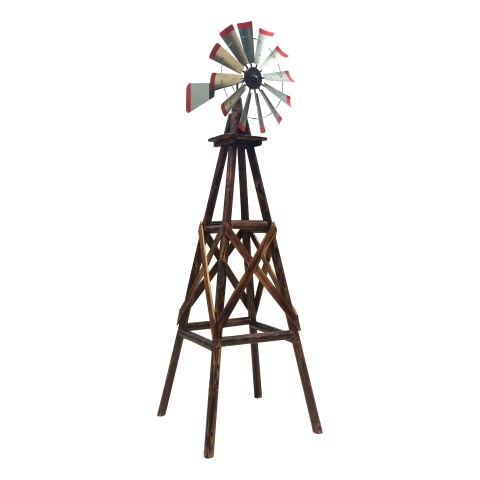 Take your garden to new heights with our Char-log windmill. As a farmstead staple, this windmill stakes the claim of your land with towering pride. The pyramid base is made with the same process as our Char-Log line. The galvanized steel head is fully operational with sealed ball bearings and greased zerks which allow it to silently rotate with the breeze.