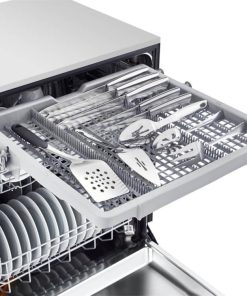 LG PrintProof? Stainless Steel Front Control Dishwasher with QuadWash?Washing dishes by hand is time consuming and wastes a significant amount of water, driving up your utility bills in the process. This LG PrintProof? stainless steel dishwasher does the work for you, saving you time and money. The PrintProof? finish is ideal for homes with small children (and their sticky fingers) as it resists fingerprints and smudges. It also makes the appliance easier to clean so you can keep your kitchen looking great. The third rack lets you optimize your dish storage, offering room for items that are small, tall and thin or oblong. Your LG dishwasher can also store up to 15 place settings, leaving you with ample space for your messiest meals and largest dinner parties. This enhanced storage means you can get everything clean in a single load. With this LG PrintProof? stainless steel dishwasher, the power is literally in your hands??its NFC Tag-On technology lets you download and start new cycles from your smartphone. The Power of QuadWash? TechnologyOne of the most significant features of this LG kitchen appliance is its QuadWash? technology. This feature cleans your dishes from multiple angles thanks to four spray arms instead of the standard two arms found on other appliances. The result is sparkling dishes that get clean the first time around, no additional hand-washing necessary. With more powerful cleaning, you’ll once again use less water and spend less time washing the dishes. This LG PrintProof? front control dishwasher also features Dynamic Dry? technology, which serves as the perfect compliment to QuadWash?. This feature dries better and faster while also eliminating water spots on your glassware. If you have questions about this product or are having trouble deciding which dishwasher is best for you, call our experts at 847-954-4140. You can also read Abt’s dishwasher buying guide for additional information. Features