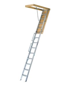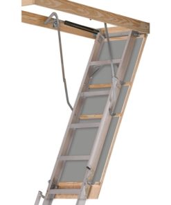 Louisville Everest Series AL228P Attic Ladder, 10 to 12 ft H Ceiling, 22-1/2 x 63 in Ceiling Opening, 13-Step, 350 lb