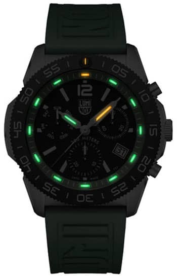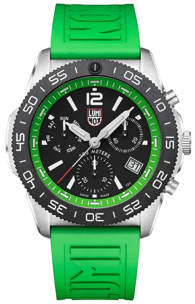 Luminox Pacific Diver Chronograph Black Dial Green Rubber Strap Diver Watch, 44mm