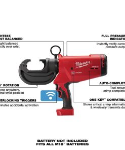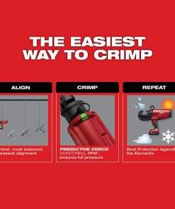 The M18? Force Logic? 12T utility crimper is the easiest way to crimp. Engineered to reduce weight and improve balance, it is up to three pounds lighter, is fully balanced, with a 350? rotating head and red alignment marks making it the lightest, most balanced and easiest crimper to align.