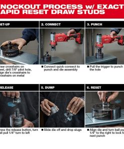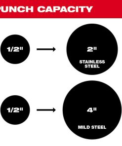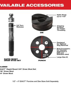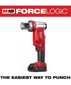 Punch holes up to four inches in size easily for your pipe, conduit or electrical boxes with the Milwaukee? M18? FORCE LOGIC? 6T Knockout Tool Kit. This kit features a Quick Connect Alignment System that increases productivity by making set up easy and providing a clear view of the surface you’re working with. For reliable and long-lasting power, the Milwaukee M18 Force Logic 6T knockout tool kit comes with an 18V REDLITHIUM? battery pack. This power lets you punch through 1/2-inch to 4-inch mild and stainless steel using EXACT? punches and dies; other competitive accessories are also compatible with this tool for your convenience. The right-angle, compact design of the Milwaukee M18 hydraulic knockout tool lets you fit it in tight spaces. It’s lightweight as well for increased user comfort and easier portability. Milwaukee EXACT knockout punch and dies not included.