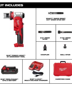 Milwaukee M18 Force Logic 6T knockout tool kit includes battery pack and charger