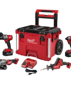 The Milwaukee M18 FUEL 2997-24PO four tool combo kit delivers the most advanced 18-Volt cordless drilling, fastening, cutting and grinding technology in the industry. This kit features four M18 FUEL 18-Volt lithium-ion brushless cordless tools including a 1/2 in. Hammer Drill (2804-20) that delivers Up to 60% More Power, is Up To 1.5?? Shorter and is Up To 2X Faster Under Heavy Load. At 1,200 in-lbs of torque and 6.9″ in length it has the power for demanding applications and allows access into tight spaces. A 1/4 in. Hex Impact Driver (2853-20) which is the Fastest, Most Compact, and Most Powerful tool in its class. At 2,000 in-lbs of torque and 4.59″ it increases user productivity for demanding fasteners and gives users more access to tight spaces. Also included is a 4-1/2 / 5 in. Grinder ( 2780-20) and HACKZALL Reciprocating Saw (2719-20). M18 FUEL is fully compatible with the Milwaukee M18 18-volt cordless system, featuring over 175+ tools. M18 FUEL also features the most advanced cordless technology in the industry, a POWERSTATE Brushless Motor, REDLINK PLUS Intelligence and REDLITHIUM Battery Technology, resulting in longer motor life, longer run time and more power.