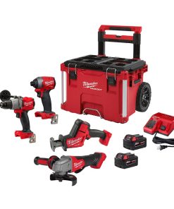 The MILWAUKEE? M18 FUEL? 4 Tool Combo Kit includes an M18 FUEL? 1/2 in. Hammer Drill/Driver, M18 FUEL? 1/4 in. Hex Impact Driver, M18 FUEL? HACKZALL?, M18 FUEL? 4-1/2 in. / 5 in. Grinder, Paddle Switch No-Lock, 2 M18? REDLITHIUM? XC5.0 Extended Capacity Battery Packs, M18?, and M12? Multi-Voltage Charger and a 22 in. PACKOUT? Rolling Tool Box. The M18 FUEL 1/2 in. Hammer Drill delivers up to 60% more power, 2X faster speed under heavy load, and up to 1.5 in. shorter length. The M18 FUEL? 1/4 in. Hex Impact Driver is the fastest, most compact, and most powerful tool in its class with its POWERSTATE brushless motor, delivering up to 2,000 in. lbs. of torque and 30% faster driving speed. The brushless power tool set also includes an M18 FUEL? HACKZALL? – the fastest cutting, most powerful one-handed reciprocating saw. The M18 FUEL? 4-1/2 in. / 5 in. Grinder generates 11A corded power, allowing users to complete the toughest grinding and cutting applications at 8,500 RPM to remove material faster and increase productivity. Each cordless power tool in this set uses the included Milwaukee M18? REDLITHIUM? battery packs, powered by the multi-voltage sequential charger to limit downtime on the job. Easily store, organize, and transport this exclusive tool kit with the included 22 in. PACKOUT Rolling Tool Box.