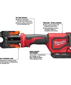 The M18? short throw press tool is the fastest press tool on the market, pressing 40% faster than the competition providing users the fastest, effortless installs from branch to fixture. Designed for one handed use, the M18? short throw press tool is an easy to use solution compared to hand tools. Auto cycle ensures a full press every time, and delivers added assurance of a quality connection. Providing force optimized for residential installs and eliminating the downtime caused by calibration intervals, the M18? short throw press tool reduces cost of owner ship and maximizes productivity for the residential installer. Powered by the M18? Red Lithium battery means this is a part of the only press system where you can cut, fasten and connect on one system.
