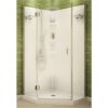 Textured ABS base, 3-piece polystyrene wall system, 3 shelves and 1 towel bar, right or left installation for pivot door. Frosted wave/clear glass pattern, tempered glass. Drain cover included. Glue up installation. 38″ x 38″ x 74″ high. 1 year warranty.